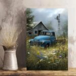 素朴なトラックフィールド風車のヴィンテージキャンバスウォールアート。サイズは30.5×45.72cm、フレームなし。リビングルーム、ベッドルーム、キッチン、カフェ等のホーム&オフィス装飾に最適。