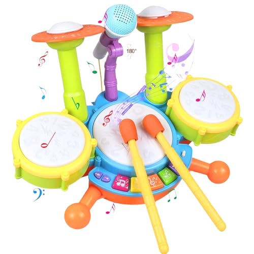Azmio ドラムセットは、子供向けのおもちゃで、マイク付きで音量調整が可能な打楽器です。楽器体験を通じてリズム感を育む楽しいアイテムです。[並行輸入品]