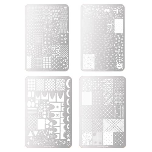 NASSIAのネイルプリントステンシルは、心、花、星、レース、クリスマスデザインを含む4枚セット。手軽に華やかなネイルデザインが楽しめます。簡単にスタンピングでき、初心者にもおすすめです。