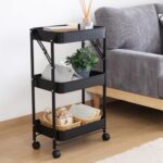 不二貿易の折りたたみキッチンワゴンは、3段構造で隙間収納に最適。サイズは幅43.3×奥行27.6×高さ73.2cm、キャスター付きで移動も便利です。組み立てに工具は不要で、スパークブラックのデザインが洗練された印象を与えます。