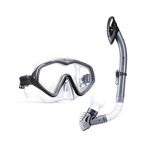 [MORGEN SKY] マスク&スノーケルセット 2点セット シュノーケルセット シュノーケリング シュノーケル マスク スノーケル ダイビング 軽量 強化ガラス 高密着性 男女兼用 浸水防止 F53 (グレー・セット) 高価買取中