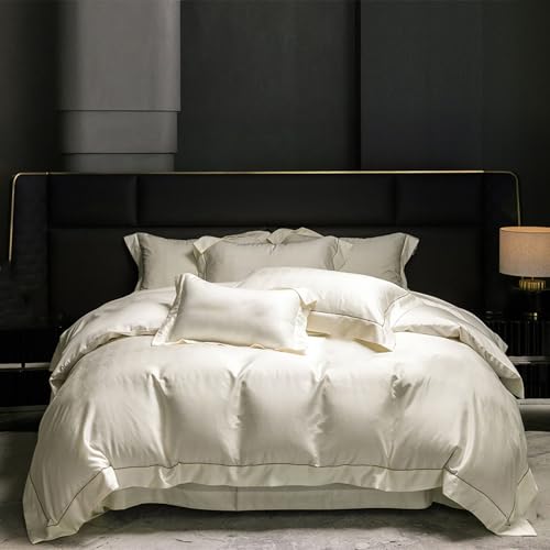 4 PCS羽毛布団カバーセット。ファッショナブルでシンプルなスタイル。フレンチソリッドカラー、ソフトで通気性のある素材。豪華なキルトカバーセット(ホワイト、キングサイズ)。
