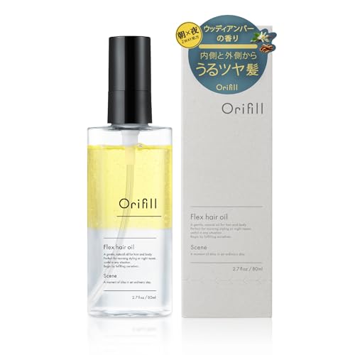 Orifill(オリフィル)のヘアオイルは、朝夜2WAYで使用できる洗い流さないトリートメント。ウッディアンバーの香りで、補修・保湿・スタイリングが可能。熱を味方にし、さらさらな髪を提供します。