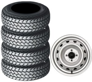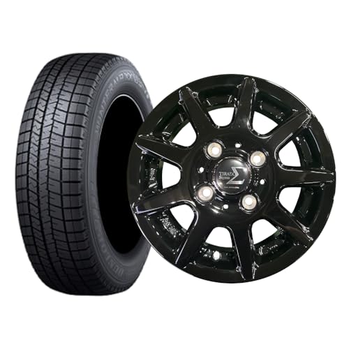 DUNLOP ウィンターマックス03 145/80R13 75Q WM03のスタッドレスタイヤと、TIRADO SIGMA 13×4.0 PCD100/4H +42 JWL-Tのホイールセット。軽トラック・バン向け、4本セット、カラーはブラックです。