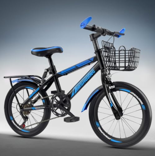 GRSMIS子供自転車 18/20/22/24/26インチ 炭素鋼フレーム 滑り止めタイヤ 変速 フェンダー+カゴ付き 子供用マウンテンバイク 中大型子供用 (ダークブルー,18インチ[身長115~135cm])の高価買取ITEM