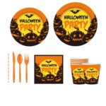 / 【2025年ハロウィングッズ】ハロウィンウェディングパーティーカトラリーセット、使い捨てプレート、紙皿、ナプキン、紙コップ、スプーン、フォーク、ピペット、10人、80個セット(黄色いカボチャ)