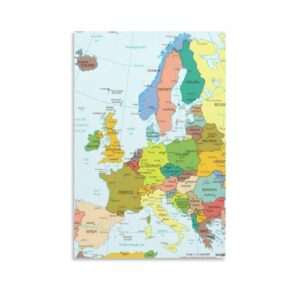美しいヨーロッパ地図ポスター、サイズ20x30cm。詳細な地域情報と国境を含み、部屋のインテリアに最適。教育用途にも利用可能で、旅行計画や地理の学習に役立ちます。