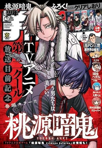 週刊少年チャンピオン 2025年 43号は9月25日発売。表紙は桃源暗鬼、巻頭カラーでTVゲームCrimson inferno情報あり。プレミアムクリアしおり5種セット付き。ルパン三世 異世界の姫君など掲載。誌面の切り抜きなし。