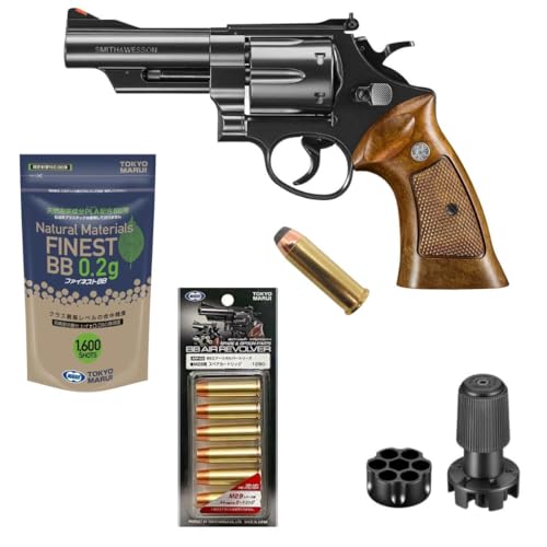 マルイのエアガン5点セットには、エアーコッキングのM29 .44マグナム(4インチ・ブラックモデル)、BB弾、カートリッジ、スピードローダー、ダミーカートが含まれています。対象年齢は10歳以上です。