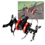 NETWOWの多機能整地除草ホイールは、家庭用の草刈り機アタッチメントで、直進と斜めナイフの交換が可能。深溝掘りや土壌撹拌に対応し、高耐久鋼で作られています。サイズは28×9センチ。