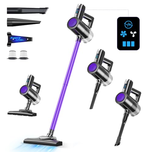 2025進級版コードレス掃除機は26000paの超強力吸引力を持ち、壁掛け収納&充電が可能。LCDタッチディスプレイで操作簡単、45分の連続稼働。ハンディークリーナーとしても使え、2段階の吸引力調整、HEPA多重濾過、ワンタッチゴミ捨て、多機能ノズル付きで家庭内全てに対応。
