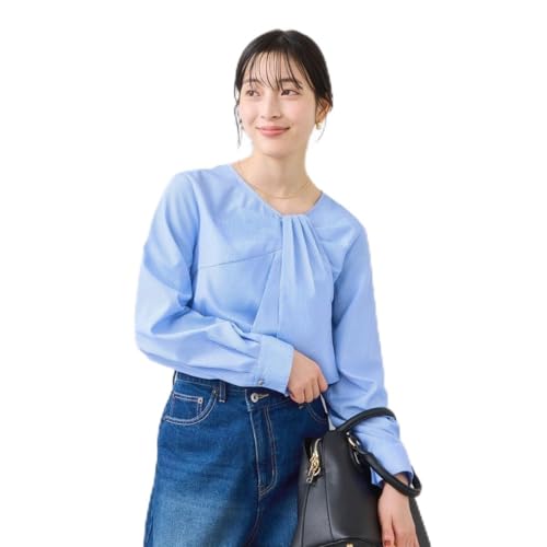 ビスのフロントねじりデザインブラウスは、鮮やかなブルー系で、トレンド感あるデザインが特徴です。ゆったりとしたシルエットで、着回しやすく、カジュアルからお出かけスタイルまで幅広く活躍します。