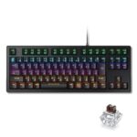 iCleverのテンキーレス茶軸メカニカルキーボードは、91キーの80%サイズで、日本語配列。24種類のバックライトを搭載し、ゲームやオフィスで使えます。Windows対応の有線モデル、ブラックカラー。