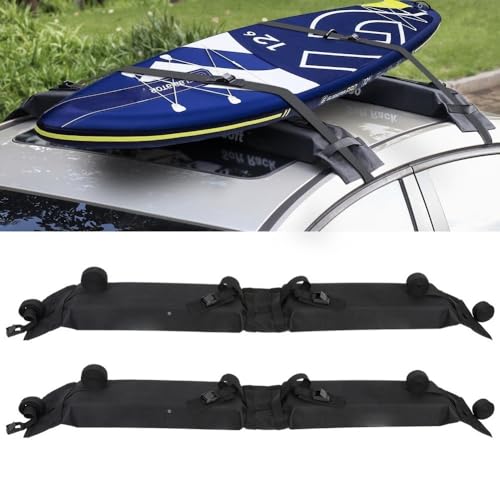 / 【Acnivko】カールーフキャリア、2本セット ソフトルーフラック 車用 PVC 折りたたみ式 アウトドア対応60KGまでの耐荷重 耐衝撃 傷防止 車保護 ユニバーサル 車のルーフラゲッジバーカバー 荷物運搬 サーフボード運搬などに適用 (売れ筋商品,125*18*7cm)