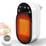 小型セラミックヒーター、450W、2段階温度調整、人感センサーとタイマー付き。90°回転、静音設計、持ち運び便利で、様々な部屋で使用可能。PSE認証済み。