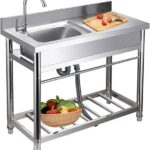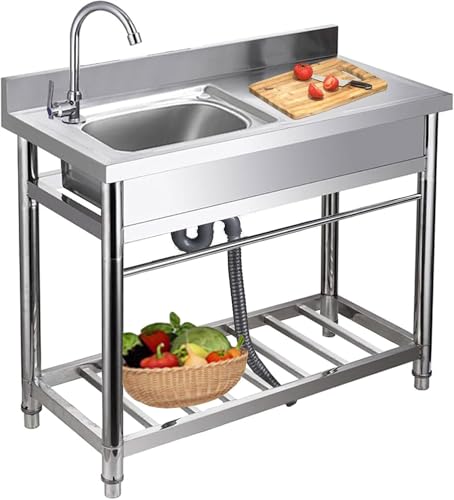 ステンレス製のキッチンシンク、シングルボウル304ステンレス製の商業用洗浄機、蛇口と収納ラック、作業台排水装置、屋外屋内レストランに適していますの高価買取