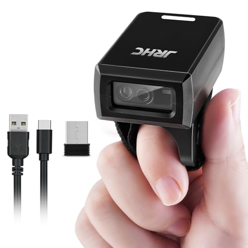JRHC 1D 2D ウェアラブルリングバーコードスキャナー。ポータブルミニリーダー。3-in-1 BT、2.4G、USB有線対応。Android、iOS、Windows、Mac互換。