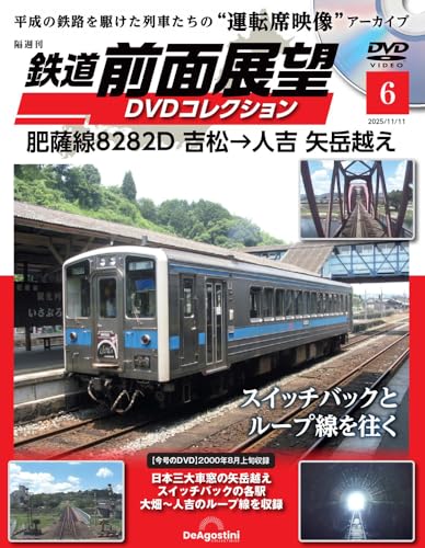 鉄道 前面展望DVDコレクション第6号では、肥薩線8282Dの吉松から人吉までの矢岳越えを収録。壮大な景色と迫力の走行音を楽しめるDVD付きの分冊百科です。