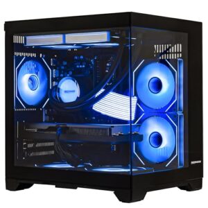 ゲーミングデスクトップパソコン – AMD Ryzen 5 5600GT 3.6GHz – RTX 5060 8GB グラフィックボード – DDR4 メモリ16GB – 1TB M.2 NVMe SSD – 240mm 水冷クーラー -WIFI & ブルートゥース – 可変光ファン – Win 11 Pro 黒いオーシャンビューのデザインプパソコン