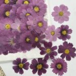 プリザーブドフラワーのコスモスのドライフラワー50個セット(パープル)。ネイルアートやメイクアップ、手工芸品の材料として最適で、創造的な作品作りにぴったりです。
