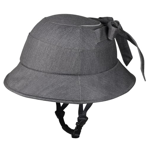 大人用レディースの帽子型サイクルヘルメット。おしゃれなリボンハット風でSG基準適合。軽量設計、反射材付き、サイズ調整可能(54〜57cm)。色はグレー。