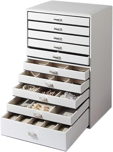 / BRZU 大容量のジュエリー収納ボックス、多層、10層収納キャビネット、ヨーロッパのプリンセス、女性への最高の贈り物、クリスマス (ホワイトのマルチトレジャーボックス,10段(240×195×360mm))