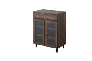 ヴィンテージが際立つキャビネット 幅60 ブラウン サイドボード キッチン収納 ガラス扉 新生活 カップボード 食器収納 一人暮らし 引出し 西海岸