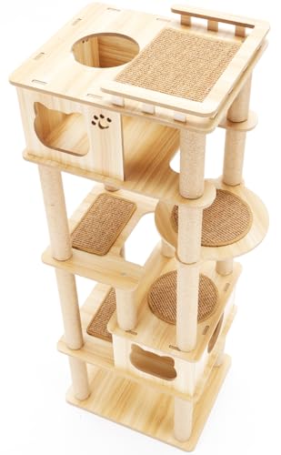 猫家族 天空のキャットハウス キャットタワー 木製 多頭飼い 大型 据え置き型 スリム 爪とぎ 猫タワー展望台 爪研ぎ 人気 おしゃれ 高さ167cm (nkz27 マット付) 高価買取中