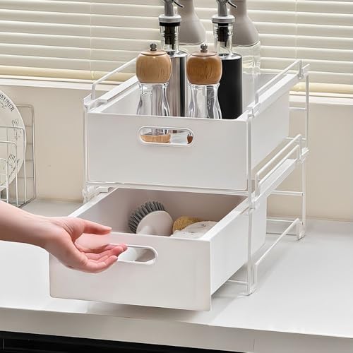 Youlinesの引き出し式キッチン調味料ラックは、多機能で大容量の収納が可能。食器や鍋具のスタンドとしても使え、シンプルでスタイリッシュなデザイン。サイズはラージ、色はホワイトです。