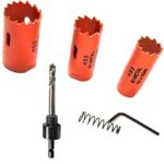 HSSバイメタル穴あけドリルビット、16-19mmサイズ。石膏ボード、プラスチック、薄鉄、木材などに対応。高い耐久性と切削性能を持ち、3個セットで便利に使用できます。