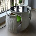 Ruying ラタン調 テーブル&チェア3点セット(テーブル×1 チェア×2)。高級人工ラタンを使用したガーデン用家具。ホテル、カフェ、ベランダ、テラスに最適。オフホワイトで在庫豊富。