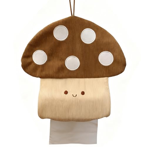かわいいマッシュルームデザインのトイレットペーパーホルダー。収納力抜群のティッシュオーガナイザー、モダンで自宅やオフィス、バスルームにぴったりのブラウンカラー。