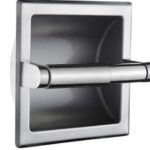 EVREFINトイレットペーパーホルダーは、黒の埋め込み式デザインで、304ステンレススチール製の二層式。浴室やトイレの壁掛けに最適で、シルバーの仕上げが美しい。
