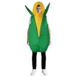 トウモロコシのハロウィンコスプレ衣装です。大人向けの着ぐるみで、男女兼用。食べ物型でユニークなデザイン。イベントやパーティーにぴったりな緑色の半身仮装。