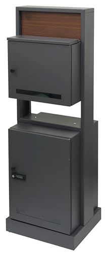 MOJYU 門柱型宅配ボックス付ポスト Milo ダークグレー PBX-135 ポスト 郵便ポスト メールボックス おしゃれ 郵便受け 宅配ボックス 北欧風 鍵付き 自立 スタンド ハイタイプ 玄関 家庭用 高価買取中