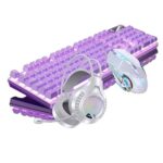 Quxxuolゲーミングキーボードマウスセット ゲーミングキーボード有線防水、防塵、静音ボタン、厚めのクランプ足、クールな照明、高精度センサー、USBポートを装備し、ゲーム愛好家やオフィスワーカーに適しています (キーボード + マウス + ヘッドセット + マウスパッド,紫 – [ホワイトライト])の高価買取ITEM