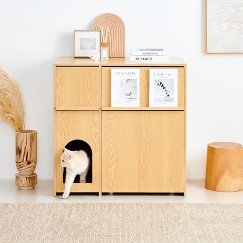 VENTOTA猫トイレは、隠すデザインが特徴的な収納ラックです。猫砂飛散防止機能を持ち、掃除も簡単。ナチュラルな木目調で、おしゃれな家具としても利用可能です。扉付きで、インテリアにぴったり。