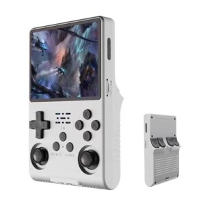 R40S Pro ハンドヘルドゲーム機、ミニレトロゲーム機、3.5インチIPSスクリーン内蔵30エミュレーター、256GB SDカード、3800mAhバッテリー、メニューは英語、ポルトガル語、韓国語、中国語などをサポート (透明ブラック, 256GB)