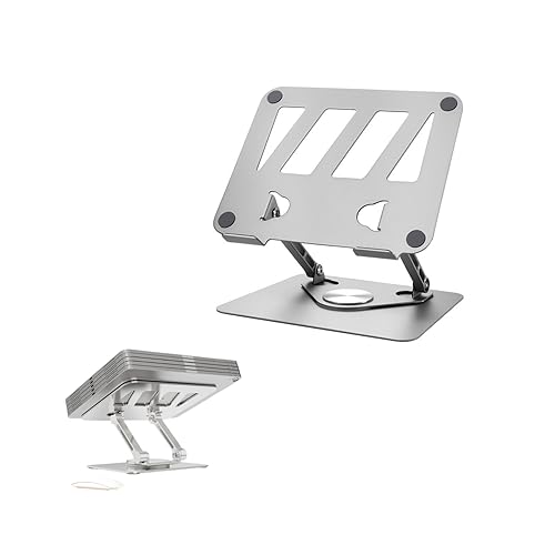 折りたたみ式の人間工学設計ノートパソコンスタンド。無段階調整可能で姿勢改善に効果的。アルミ合金製、グレー。Macbook、iPad、タブレット対応で、省スペース設計。滑り止め機能付き。