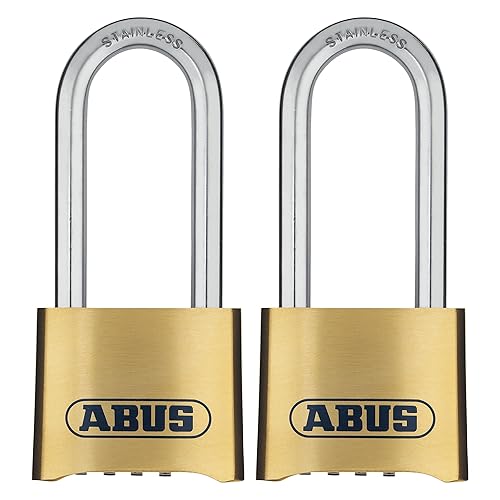 Abus 180IBは、全天候型のソリッド真鍮製の南京錠です。4ダイヤルのリセット可能なコンビネーション機能を備え、ステンレススチールのロングシャックルが2個含まれています。