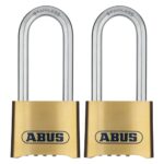 Abus 180IBは全天候型の4ダイヤルリセット可能な南京錠です。ソリッド真鍮製で、耐久性が高く、ステンレススチールのロングシャックルが2本付属しています。