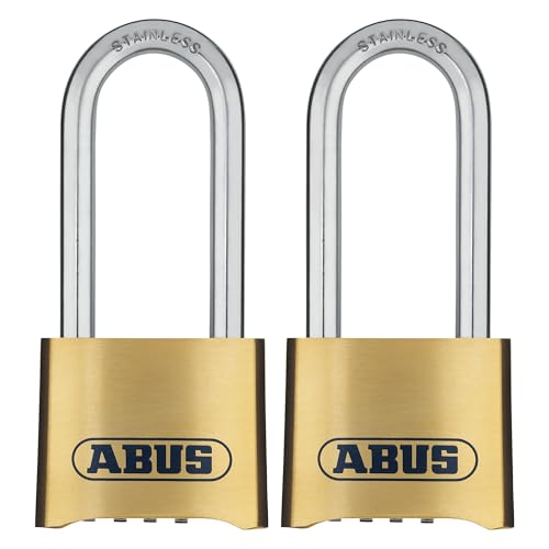 Abus 180IB 全天候型ソリッド真鍮 4ダイヤル リセット可能なコンビネーション南京錠 ステンレススチールシャックル付き (ロングシャックル2個パック)の高価買取