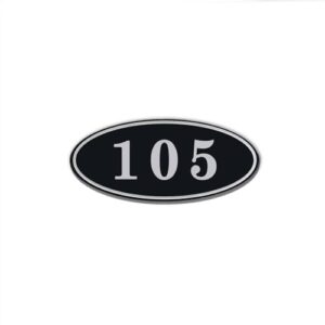 XILIWU 部屋番号 プレート 両面テープ付き 楕円型 アクリル製 厚み2mm 10×4.4cm ブラック ステッカー シール 耐候 耐水 屋外 (105)