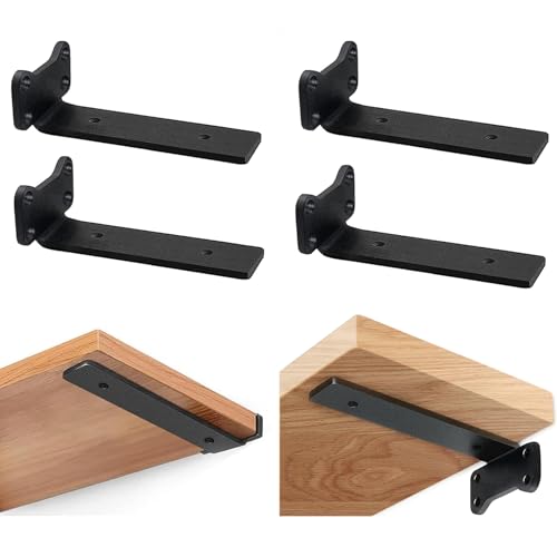 SYWXJ棚受け金具は厚さ5mm、荷重90KG以上の頑丈なアイアンブラケットです。隠し棚受けで目立たず、4個セットでビス付き。ブラックのデザインがインテリアにマッチします。