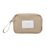 リズデイズのおむつポーチは、圧縮機能でコンパクトに収納可能。大容量で、おしりふき内蔵ケースが便利。着替えバッグとしても使えるベージュのデザインです。