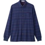 健康の森のダブルジャガードワンタッチテープ長袖全開ニットシャツ。あったか素材で、シニア向けのケアファッション。メンズLサイズ、色はネイビー(NV)。快適でおしゃれな一枚。