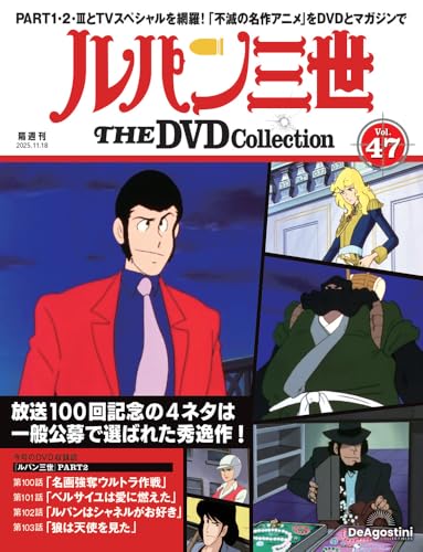 ルパン三世 THE DVDコレクション 第47号は、ルパン三世 PART2のエピソード第100話から第103話を収録したアイテムです。豪華なDVD付きの分冊百科で、ファン必見の内容です。