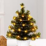 DINETTEのクリスマスツリーは、35cmのミニサイズで、LEDライト付き。タイマー機能があり、ピンクのオーナメントで室内装飾に最適です。