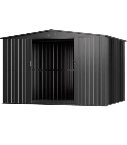 大型屋外物置メタルシェッド(300x240cm)は、高耐久性のスチール製で、防錆加工が施されています。広い収納スペースがあり、ツールやガーデニング用品などの整理に最適です。