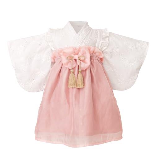 ベビー袴 2ピースは60~100cmのサイズで、男女兼用の和装です。お宮参りやお食い初め、初節句、誕生日などのフォーマルな場に最適。カラーはエンジェルピンク、サイズは90cmです。